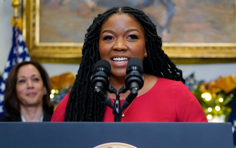 Cherelle Griner speaks at the White House after President Biden announced her wife Brittney Griner’s release from Russian prison. (Patrick Semansky / AP Photo)
